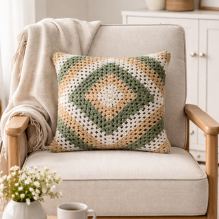 Relaxsit Handmade Crochet Geomatric Pattern Cushion – Soft Decorative Throw Pillow for Living Room & Bedroom